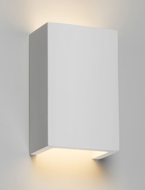 This simple yet elegant linear up and down plaster wall light, helps to create a soft, discreet feature. The white finish, although great on its own, can be painted using a good quality emulsion paint, enabling it to blend into the surrounding walls seamlessly. This is great as a single fitting, but can also be in a group, providing a smooth ambient lighting feature.