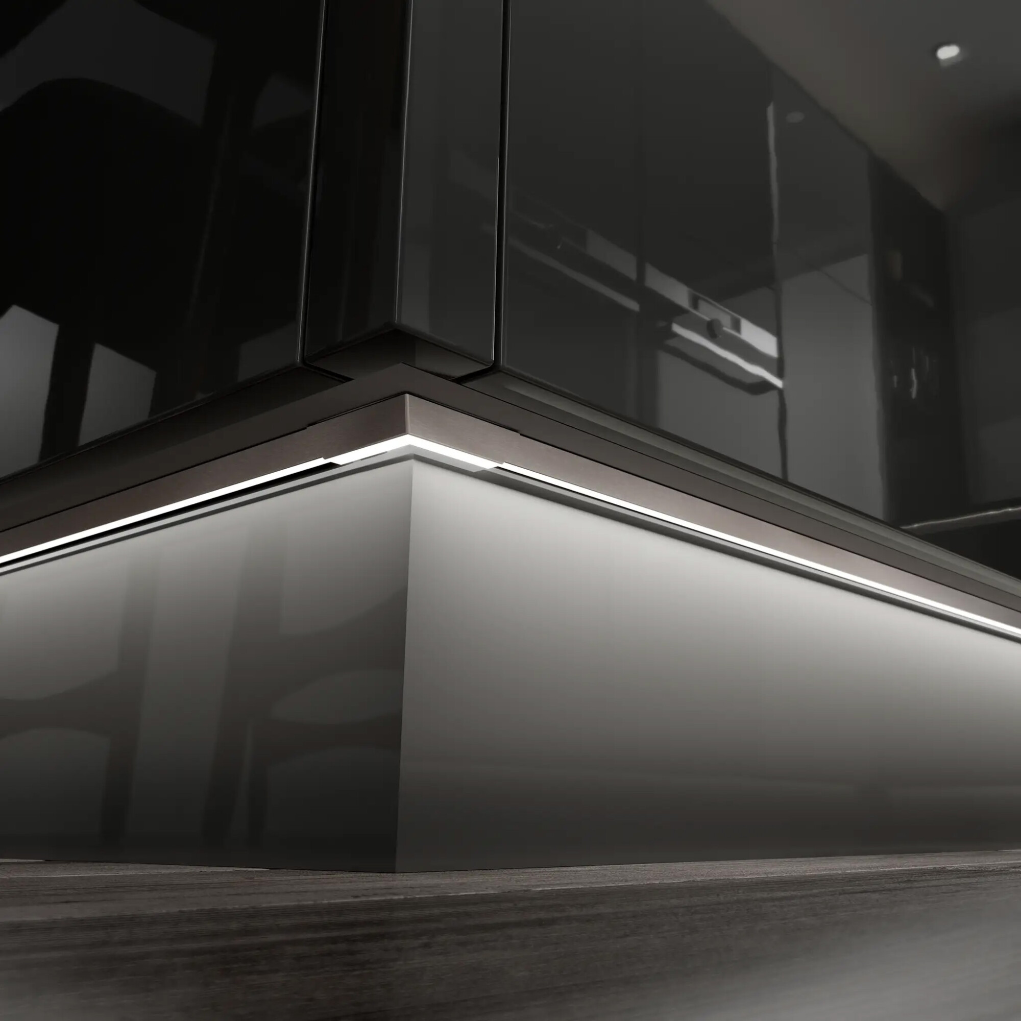 The Accent profile applies directly to the plinth top with a simple push fit. Housing the LED strip in this profile not only diffuses the light, but projects it forward to cast a wider spread across the floor.