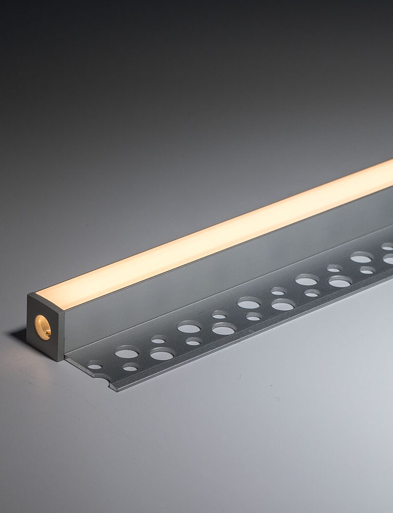 The PRO13P Plaster-in Edge LED Profile 32x13mm is designed to provide exceptional flexibility and architectural detail to any room. It is ideal for edging tiled or plaster walls, enhancing the aesthetic appeal of your space. This profile features an opal diffuser, ensuring a soft and even light distribution. The anodised silver coating adds a sleek and modern touch, making it a perfect choice for contemporary interiors. Specifically designed for plaster-in applications, this LED profile seamlessly integrates into your design, offering both functionality and style.